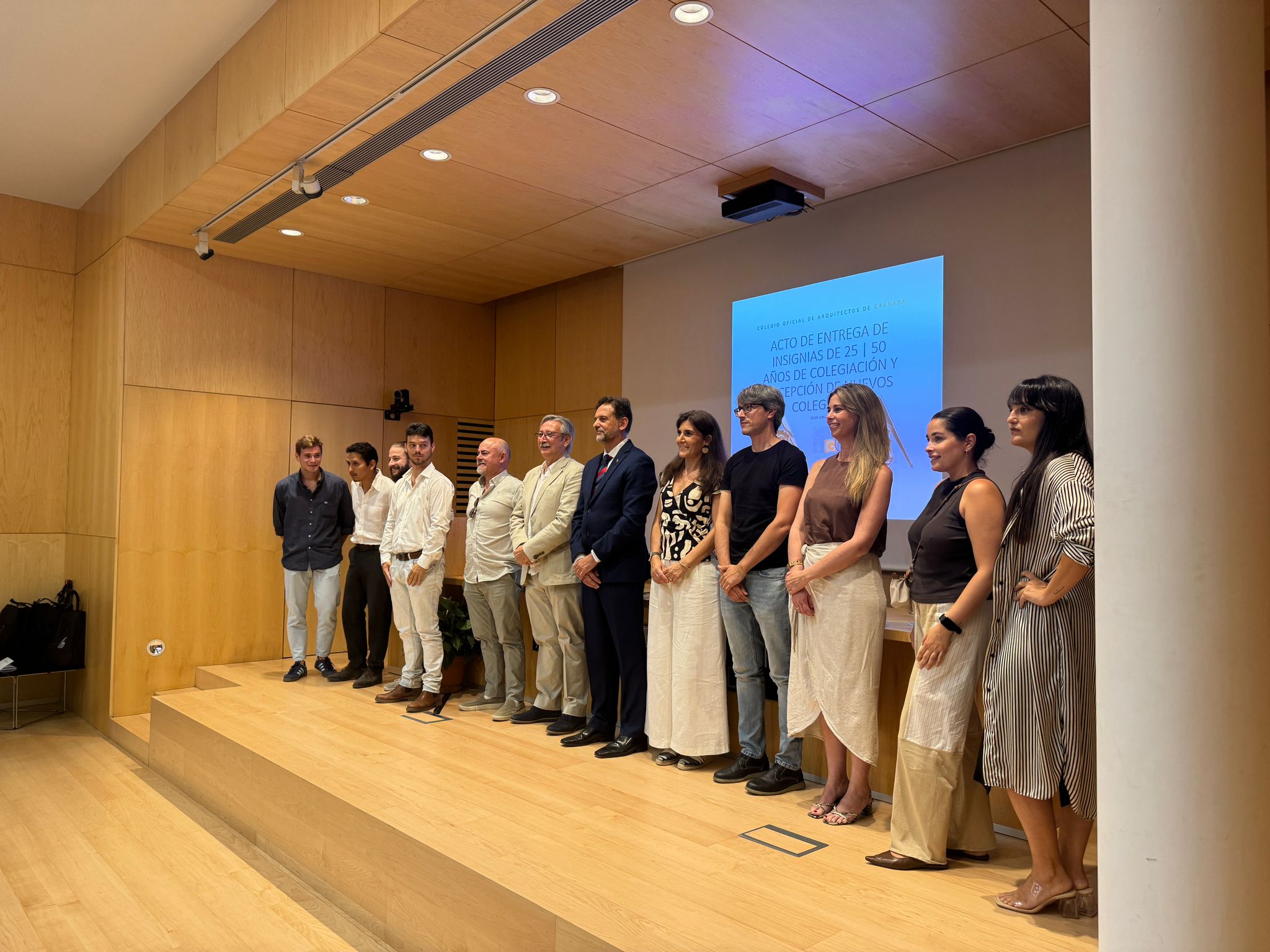 Tuve el honor de asistir al acto de recepción de los nuevos arquitectos en el Colegio Oficial de Arquitectos, entre los cuales me encontraba. Durante la ceremonia también se hizo entrega de insignias conmemorativas a los miembros que celebraban 25 y 50 años de trayectoria colegiados como arquitectos, en reconocimiento a su compromiso y aportación a la profesión.